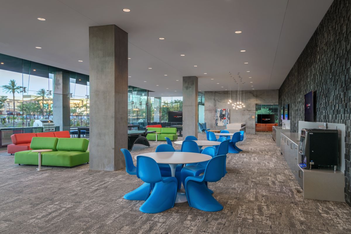 The 9.5 acres of landscaped courtyards that connect the five towers extend the same logic at grade level, creating shaded walking paths, cooling the outdoor environment through plantings and irrigation, and giving the community a quality of outdoor life that is unusual for an urban residential development in the Sonoran Desert. At Optima Kierland, 75% of the site is open and landscaped space. That figure is not incidental. It is the result of a deliberate decision to build vertically so that the ground can breathe.