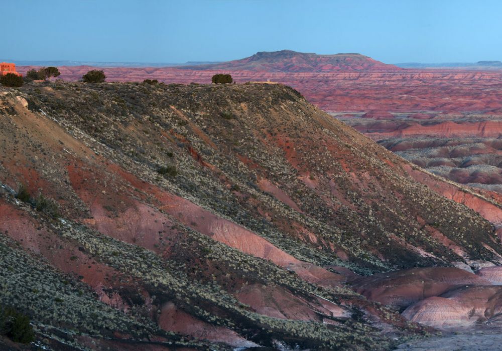 While the park is known for its natural and archaeological wonders, it also boasts significant architectural landmarks. The Painted Desert Inn, located on the park’s north side, dates back to the 1920s. Over the years, it has been updated by prominent figures such as National Park Service architect Lyle Bennett, the Civilian Conservation Corps, and the Fred Harvey Company’s lead architect, Mary Colter. The inn features murals painted by noted Hopi artist Fred Kabotie and offers exhibits on Petrified Forest history. In the summer, visitors can enjoy a treat from the ice cream counter.